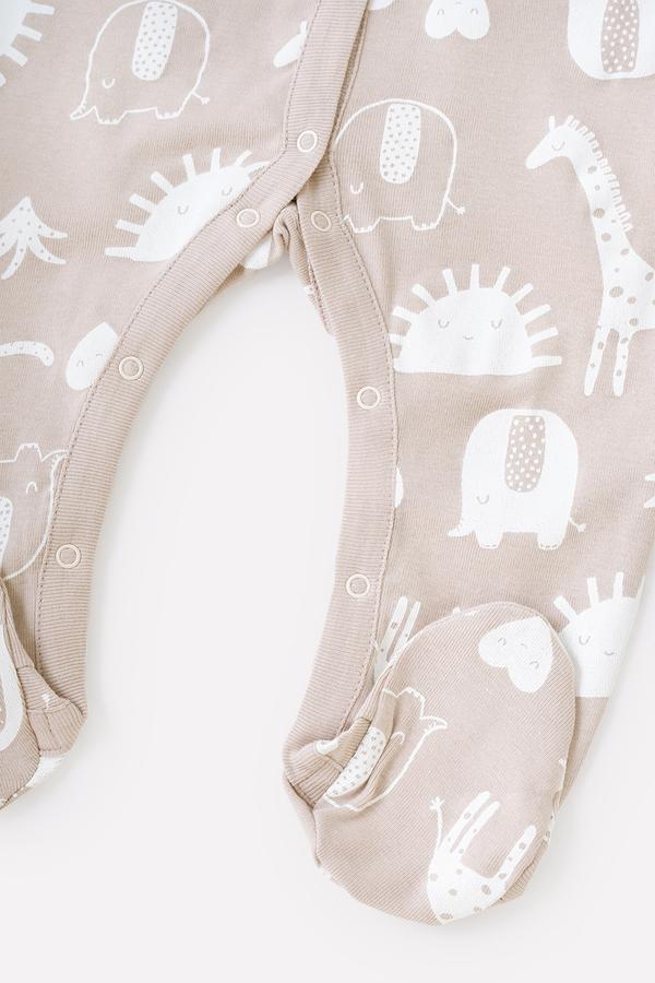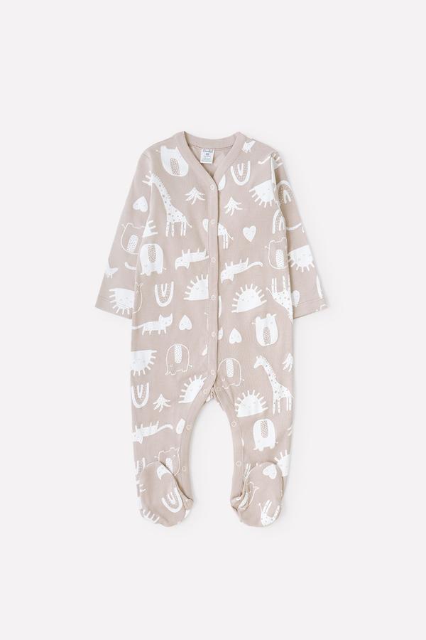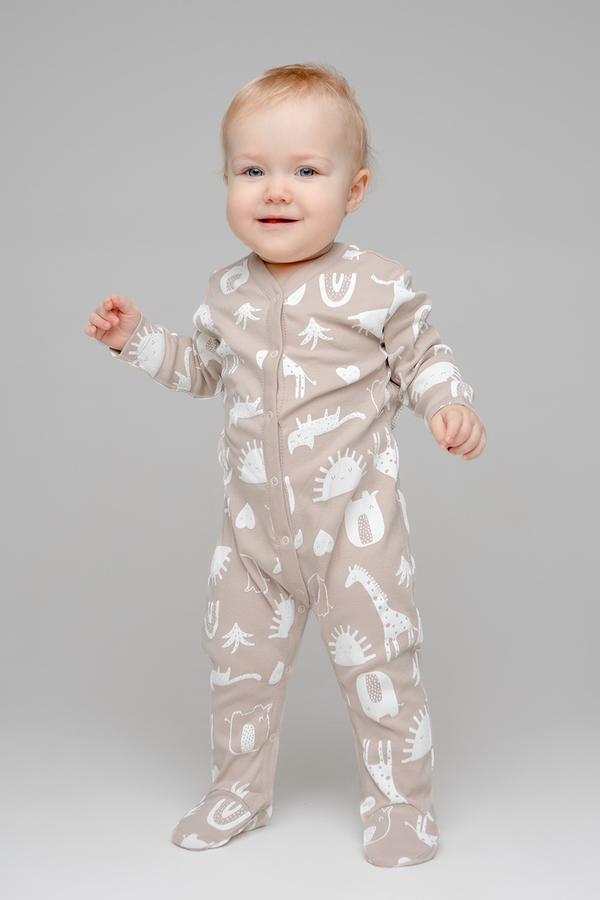 Комбинезон для новорожденных из мягкого, эластичного трикотажа - рибаны. У изделия застежка на кнопки. В 56 размере на рукавах предусмотрены антицарапки, швы выполнены наружу. Оригинальная набивка выполнена из стойких, гипоаллергенных текстильных красителей. Все трикотажные полотна производятся в соответсвии с нормами Швейцарского сертификата ЭкоТекс.