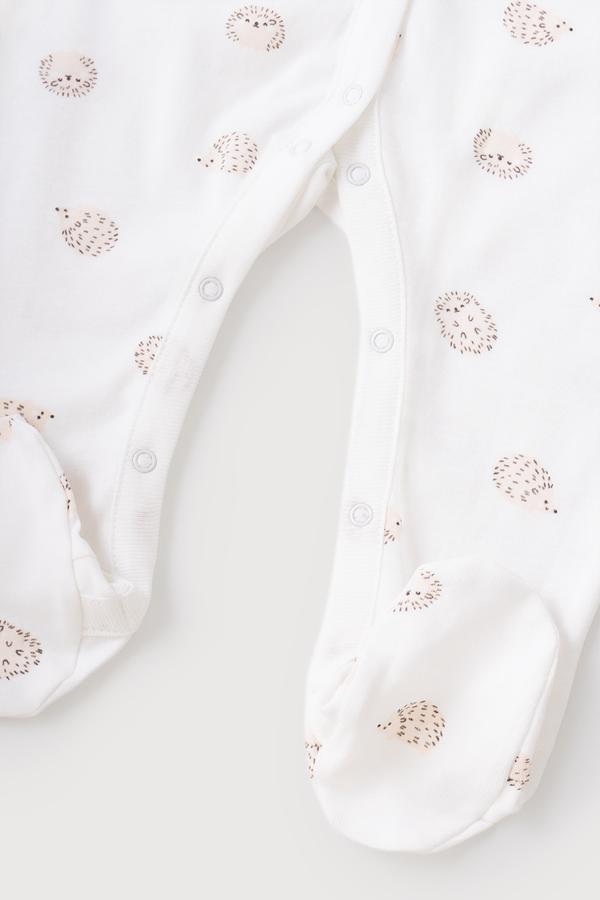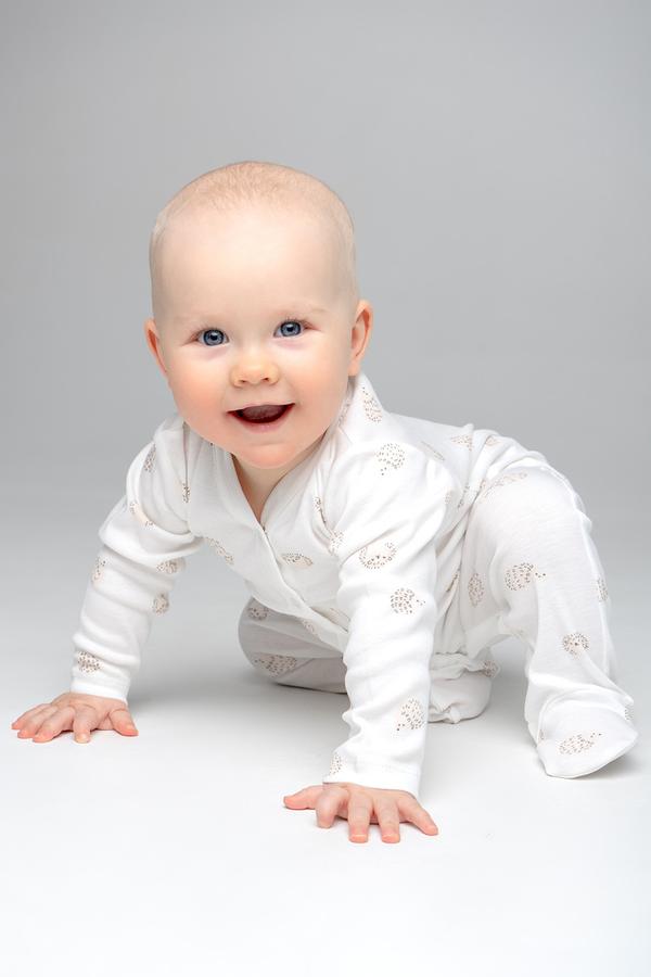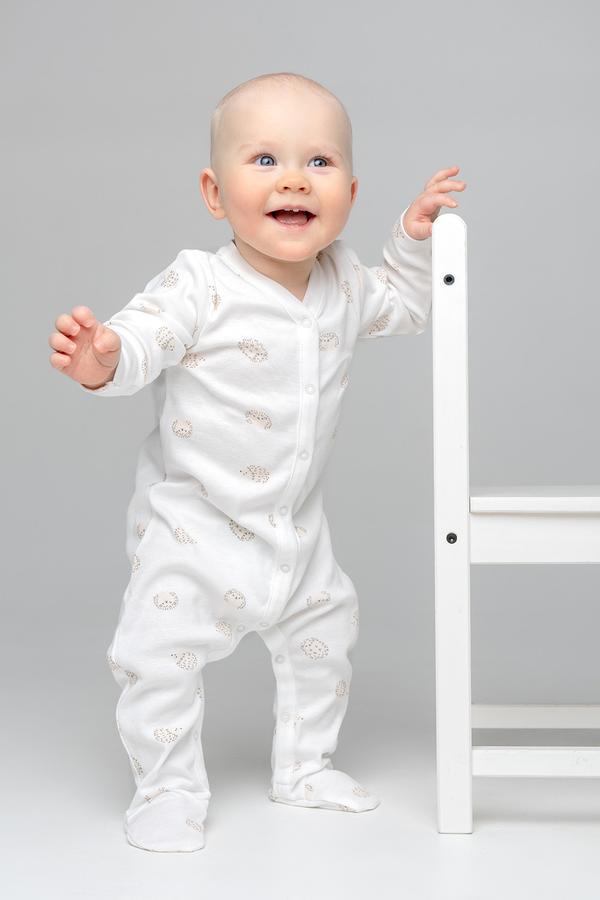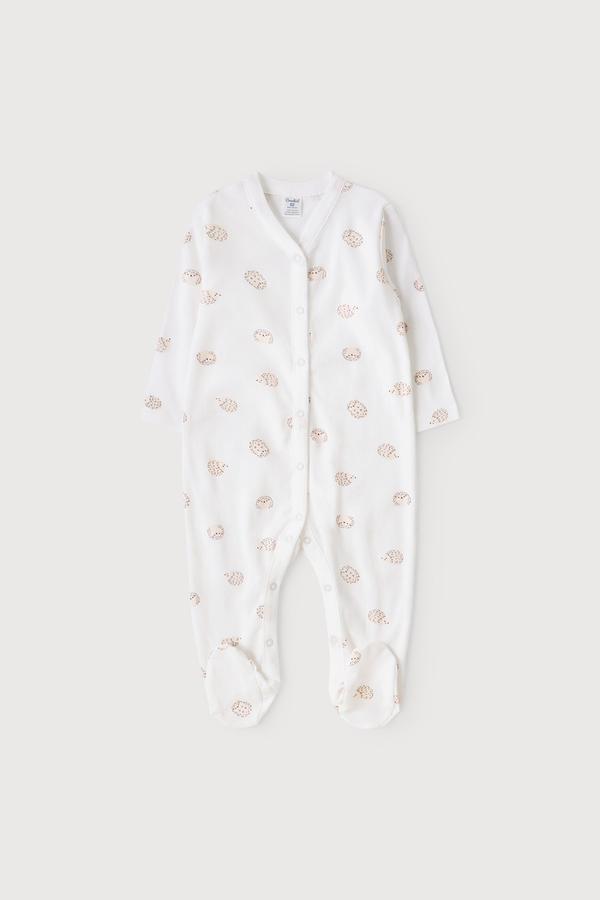 Комбинезон для новорожденных из мягкого, эластичного трикотажа, произведенного из натурального хлопка. Изделие застегивается на кнопки. В 56 размере на рукавах предусмотрены антицарапки, швы выполнены наружу. Оригинальная набивка выполнена из стойких, гипоаллергенных текстильных красителей. Все трикотажные полотна производятся в соотвествии с нормами Швейцарского сертификат ЭкоТекс.