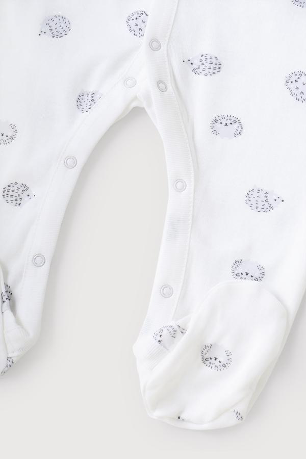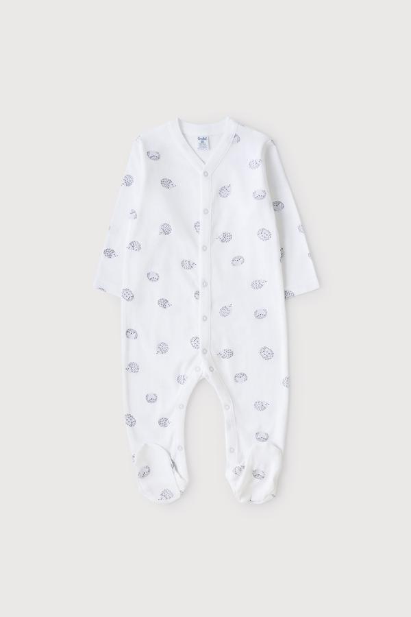 Комбинезон для новорожденных из мягкого, эластичного трикотажа - рибаны, произведенного из натурального хлопка. У изделия застежка на кнопки. В 56 размере на рукавах предусмотрены антицарапки, швы выполнены наружу. Оригинальная набивка выполнена из стойких, гипоаллергенных текстильных красителей. Все трикотажные полотна производятся в соответсвии с нормами Швейцарского сертификата ЭкоТекс.