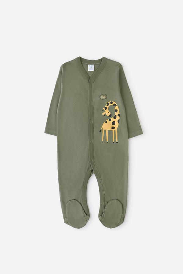 Комбинезон для новорожденных из мягкого трикотажа, произведенного из натурального хлопка. У изделия застежка на кнопки. В 56 размере на рукавах предусмотрены антицарапки, швы выполнены наружу. Оригинальный принт выполнен из стойких, гипоаллергенных текстильных красителей. Все трикотажные полотна производятся в соответсвии с нормами Швейцарского сертификата ЭкоТекс.