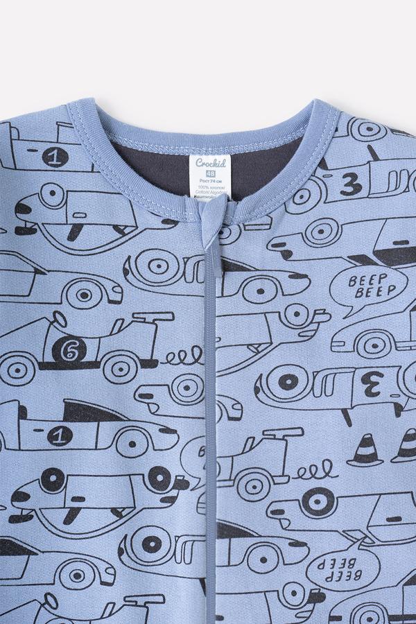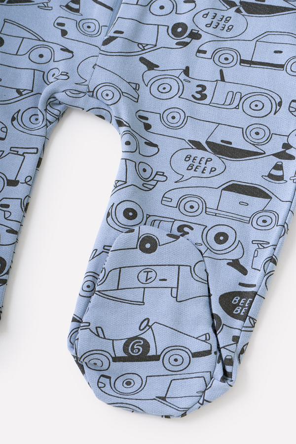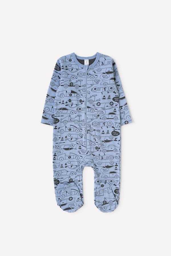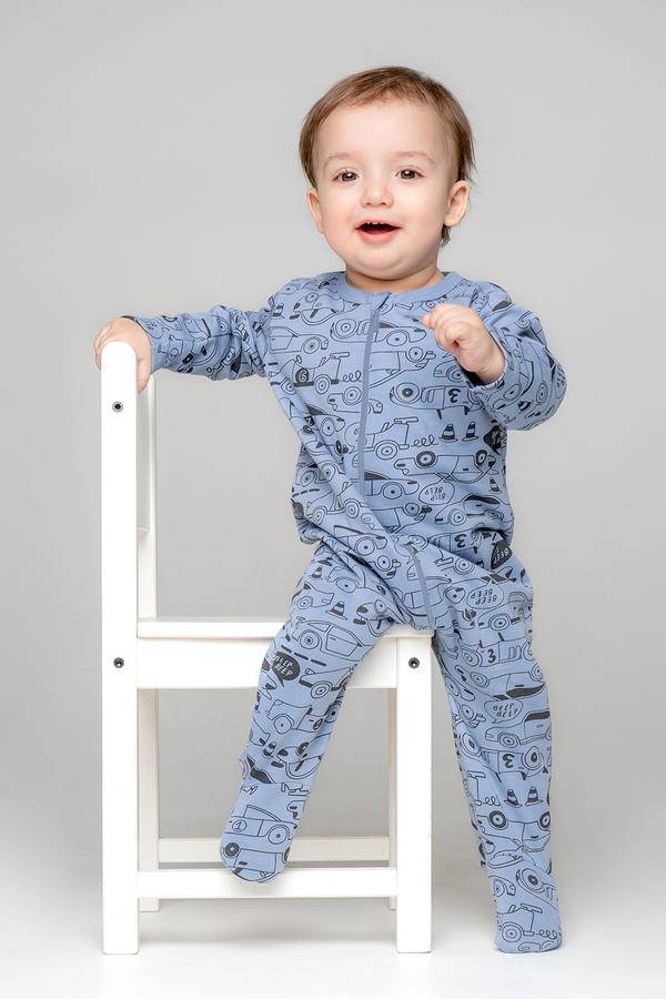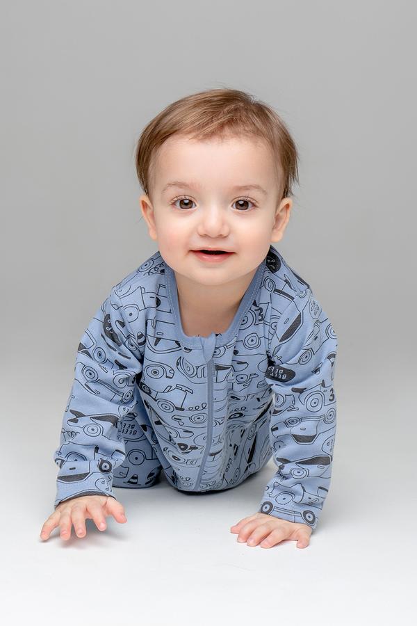 Комбинезон для новорожденных из тонконого футера с начесом, произведенного из натурального хлопка. Изделие застегивается на молнию, предусмотрена защита подбородка. Оригинальная набивка выполнена из стойких, гипоаллергенных текстильных красителей. Все трикотажные полотна производятся в соответсвии с нормами Швейцарского сертификата ЭкоТекс.