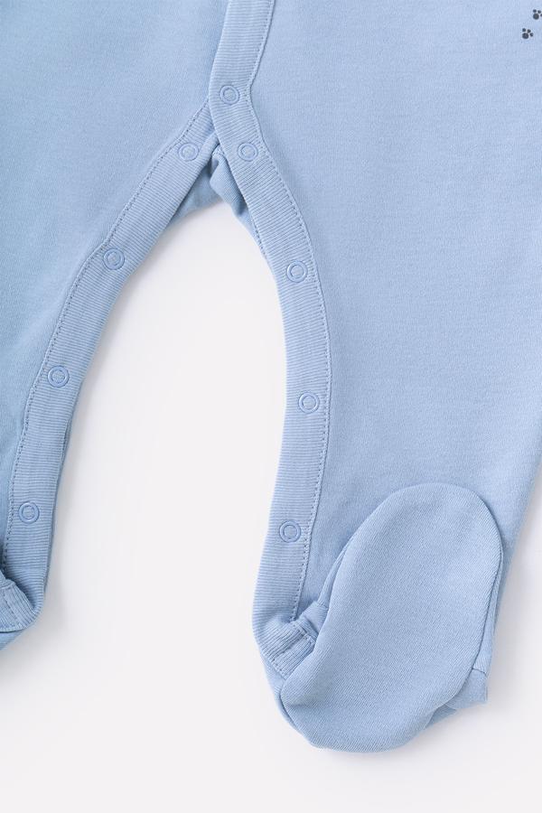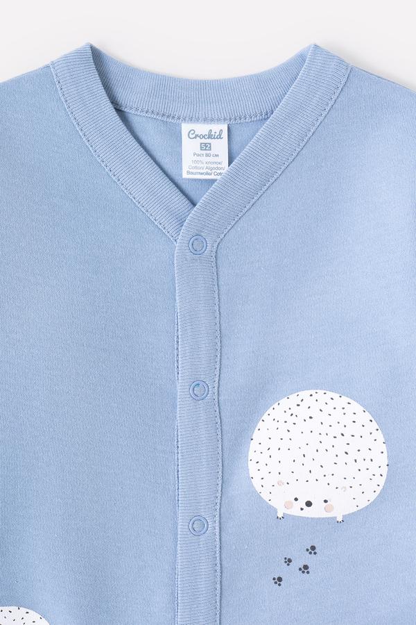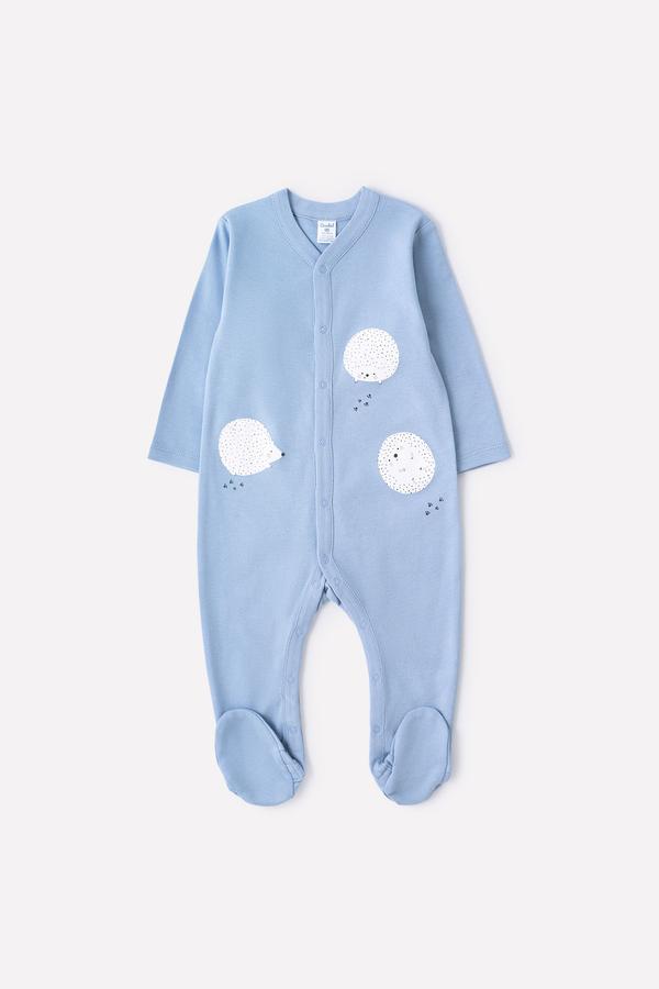 Комбинезон для новорождённых из мягкого трикотажа, произведенного из натурального хлопка. У изделия манжеты из основного полотна, застежка на кнопки. Оригинальный принт выполнен из стойких, гипоаллергенных текстильных красителей. Все трикотажные полотна производятся в соответсвии с нормами Швейцарского сертификата ЭкоТекс.