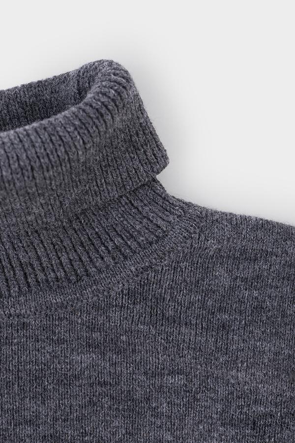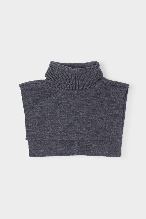 Манишка из однотонной полушерстяной пряжи в состав которой входит шерсть австралийского мериноса. Связана гладью. Высокий воротник с эластичным отворотом.