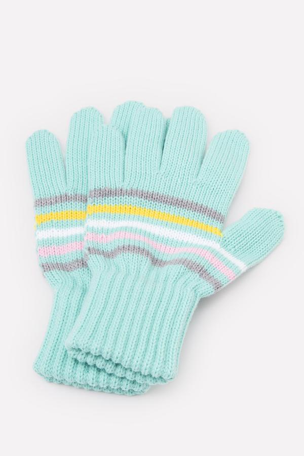 Перчатки из акриловой пряжи, в полоску. Эластичные манжеты.