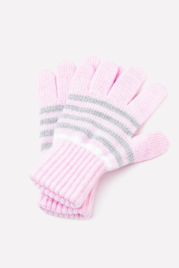 Перчатки для девочки из полушерстяной пряжи, в полоску. Эластичные манжеты.