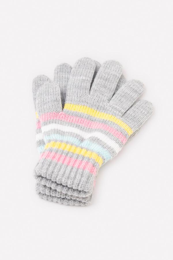 Перчатки с узором в полоску из полушерстяной пряжи. Эластичные манжеты.