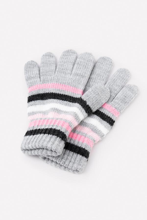 Перчатки с узором в полоску из полушерстяной пряжи. Эластичные манжеты.