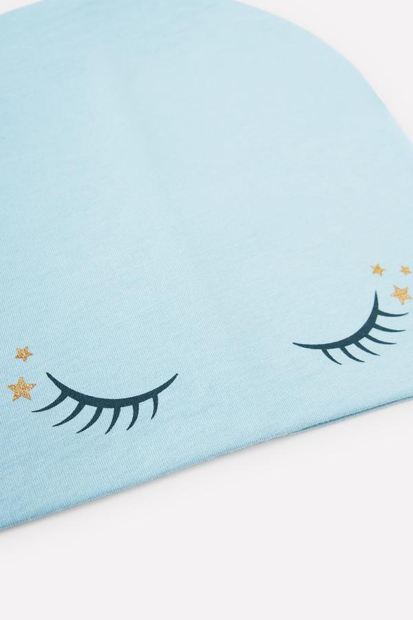Шапка для девочки. Выполнена из трикотажа супрем с эластаном. Украшена принтом.