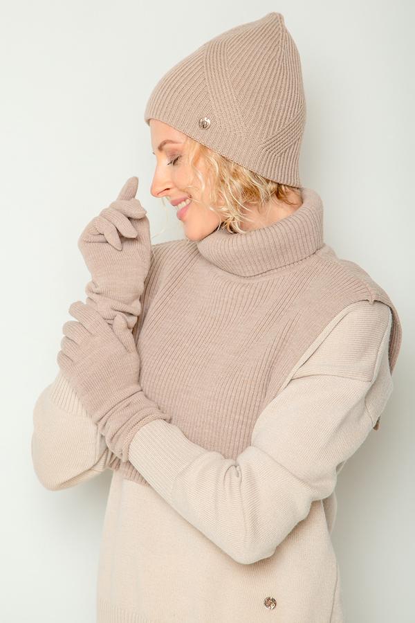 Эластичная вязаная шапка из полушерстяной пряжи, в составе которой шерсть австралийского мериноса. Выполнена переплетением в виде широкой резинки. Шерсть в составе сохраняет тепло, а волокна акрила придают изделию мягкость и объем. Базовый цвет идеально подходит к любой верхней одежде.