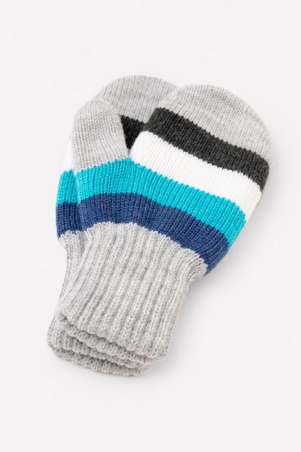 Двухслойные варежки с узором в полоску из полушерстяной пряжи. Эластичные манжеты.