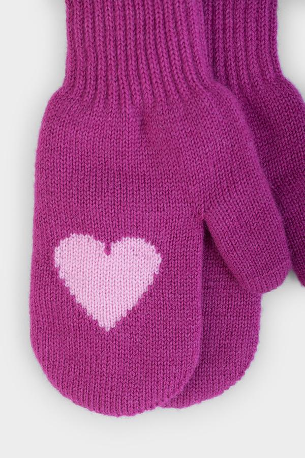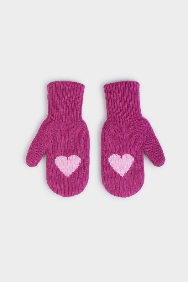 Розовые варежки с узором из полушерстяной пряжи. Эластичные манжеты.