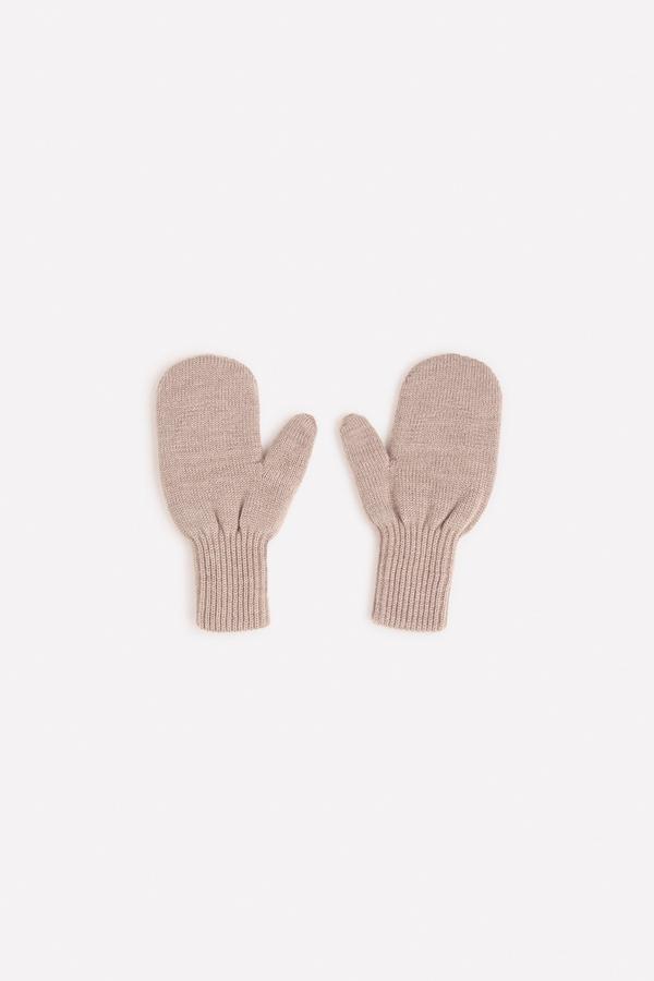 Бежевые варежки с узором из полушерстяной пряжи. Эластичные манжеты.