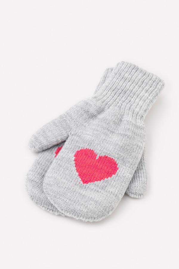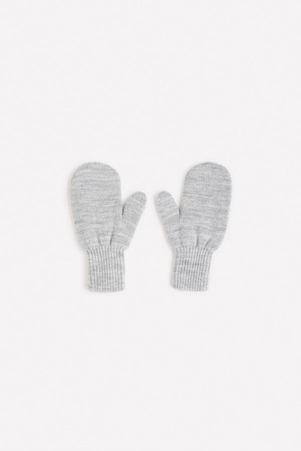 Серые варежки с узором из полушерстяной пряжи. Эластичные манжеты.