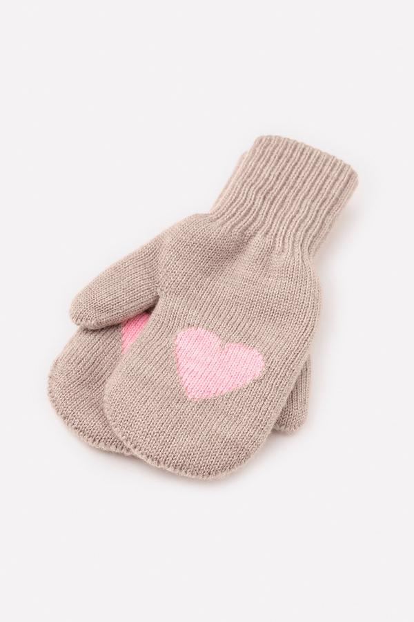 Бежевые варежки с узором из полушерстяной пряжи. Эластичные манжеты.