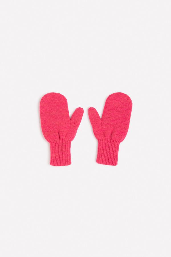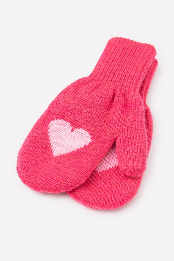 Розовые варежки с узором из полушерстяной пряжи. Эластичные манжеты.
