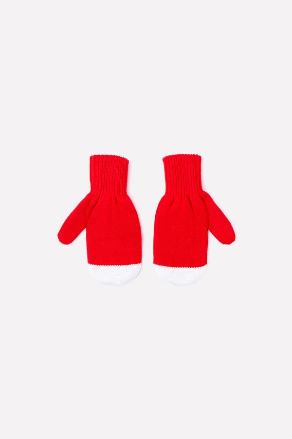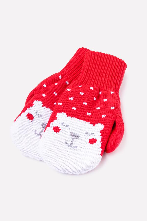 Красные варежки с вывязанным узором из полушерстяной пряжи. Эластичные манжеты.